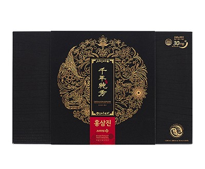 | 원재료명 및 함량 | 흑삼분말액 진[고형분 8.9%, 정제수, 흑삼분말, 국산]79.4%, 홍삼농축액(고형분 60%이상, 홍삼성분 70mg/g 이상, 진세노사이드 Rg1+Rb1+Rg3의 합 23mg/g이상, 국산)16%, 석류농축액(65brix), 녹용추출액, 수용성아쿠아민(칼슘12%), 아사이 혼합 베리농축액(65brix), 유기농 아로니아농축액(65brix), 유기농 콩코드포도농축액(68brix), 17종 유기농 과일야채 혼합분말 |